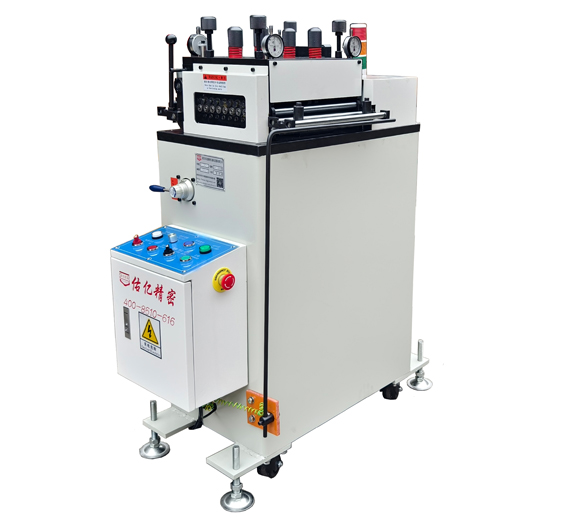 4、整平機(jī)內(nèi)部除上下整平滾輪外,另外裝整平輔助輪,以防止整平滾輪壓力過大而彎曲變形,加強(qiáng)整平滾輪的整平強(qiáng)度及壽命并提高板材表面平坦度要求