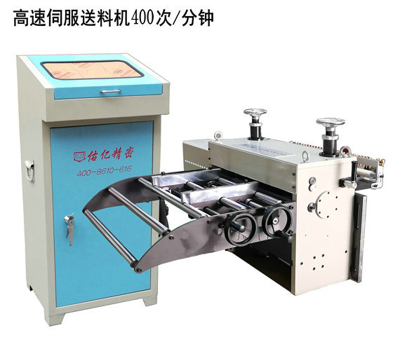 1、雙伺服送料機適合搭配高速沖床,雙伺服控制,送料速度可達300次/分鐘